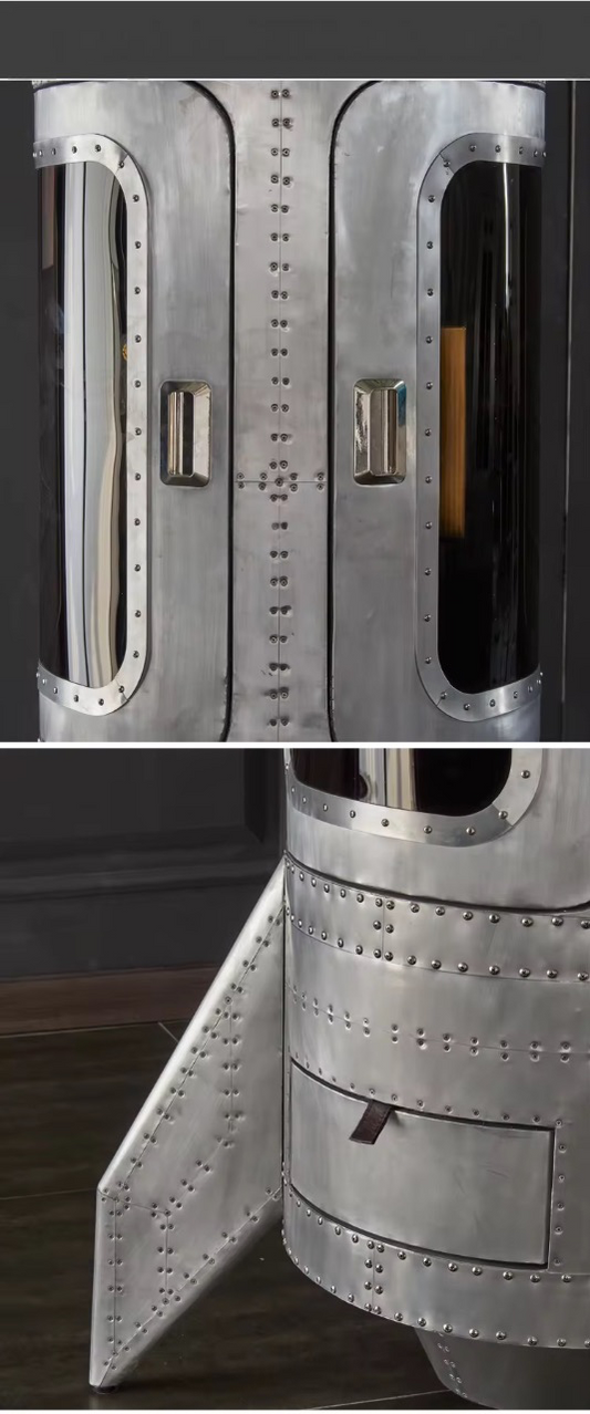 Rocket Bar Cabinet – Space Capsule-Inspired Metal Storage Unit | Industrial Retro Mini Bar Cabinet | Handmade Rocket-Shaped Liquor Cabinet for Living Room, Lounge & Office Decor
