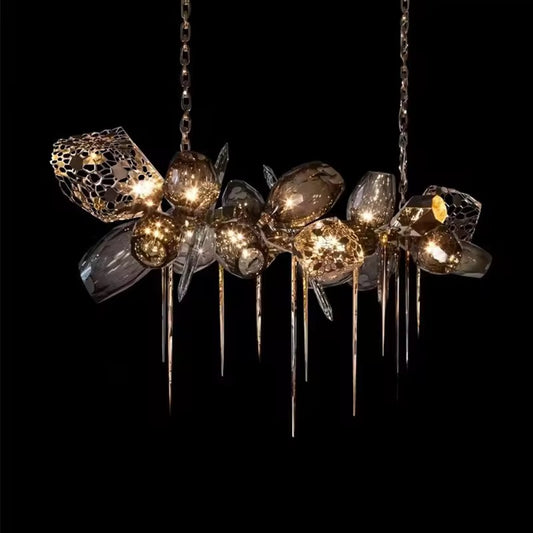 A Luxury Crystal Chandelier – Gold & Smoke Glass Pendant Light with Sculptural Design – Designer Hanging Light for Living Room, Kitchen Island & Entryway