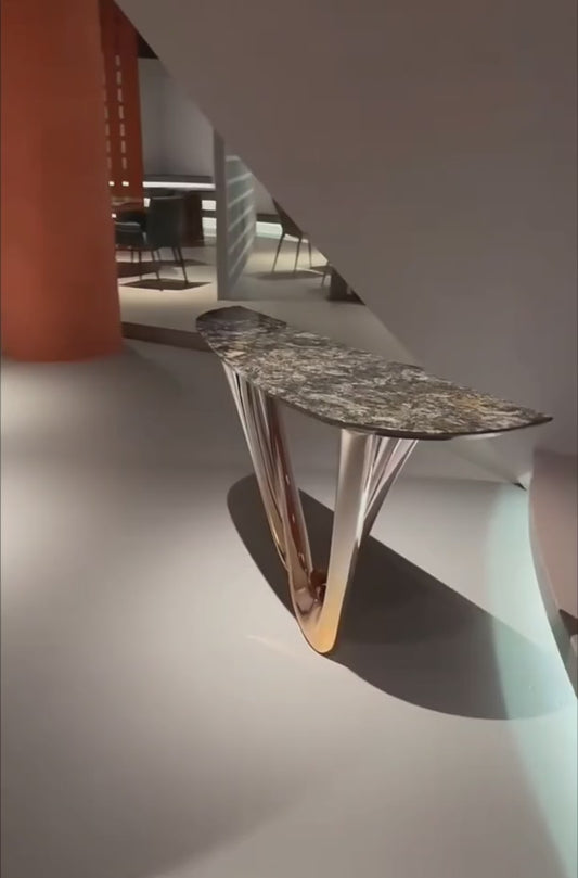 Electroplated Luxurious console table with Round Donut shaped wall decor accent