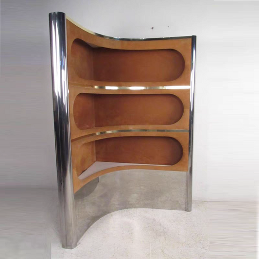 Luxury Home Bar Cabinet Set – Modern Art Deco Bar Counter & Curved Corner Display Shelf | Chrome & Suede Finish | Mini Bar for Living Room, Lounge, Office, or Hotel