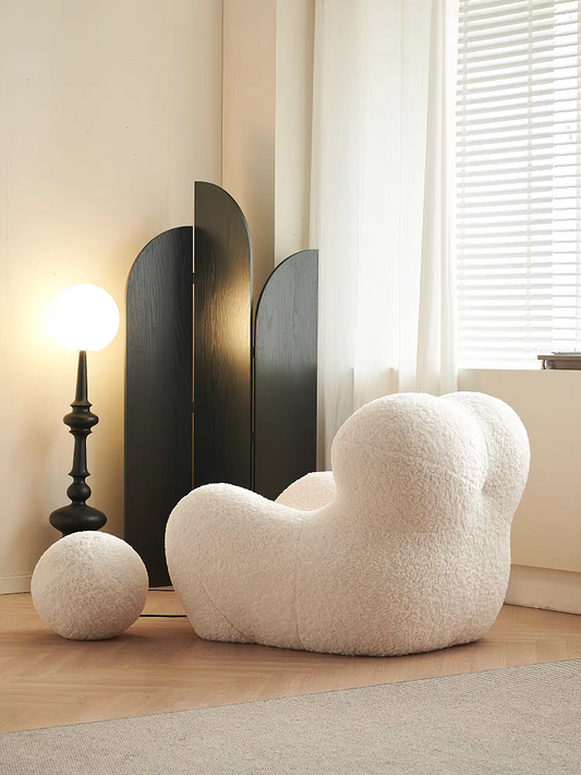 The Up chair Lamb Faux Fur super comfortable lounge chair with ottoman