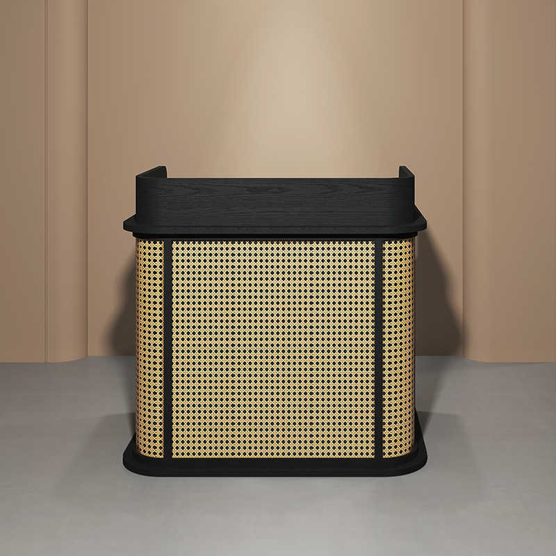 Make a memorable statement at the entrance of any business with this Compact Reception Counter, designed to suit boutiques, small stores, restaurants, and service-oriented venues. Measuring 19.7 inches deep, 27.6 inches wide, and 39.4 inches tall, its minimalist footprint packs maximum utility into even the tightest spaces. The stylish front blends natural rattan with black finished wood, delivering refined modern aesthetics that elevate brand presence and customer experience. Dual storage drawers and a privacy panel provide secure, organized access for cash management, forms, and POS essentials, keeping the countertop clutter-free during busy operations. Built for durability, this reception desk withstands heavy daily use and instantly adds professionalism and warmth to store entrances, restaurant lobbies, information points, and hospitality corners.