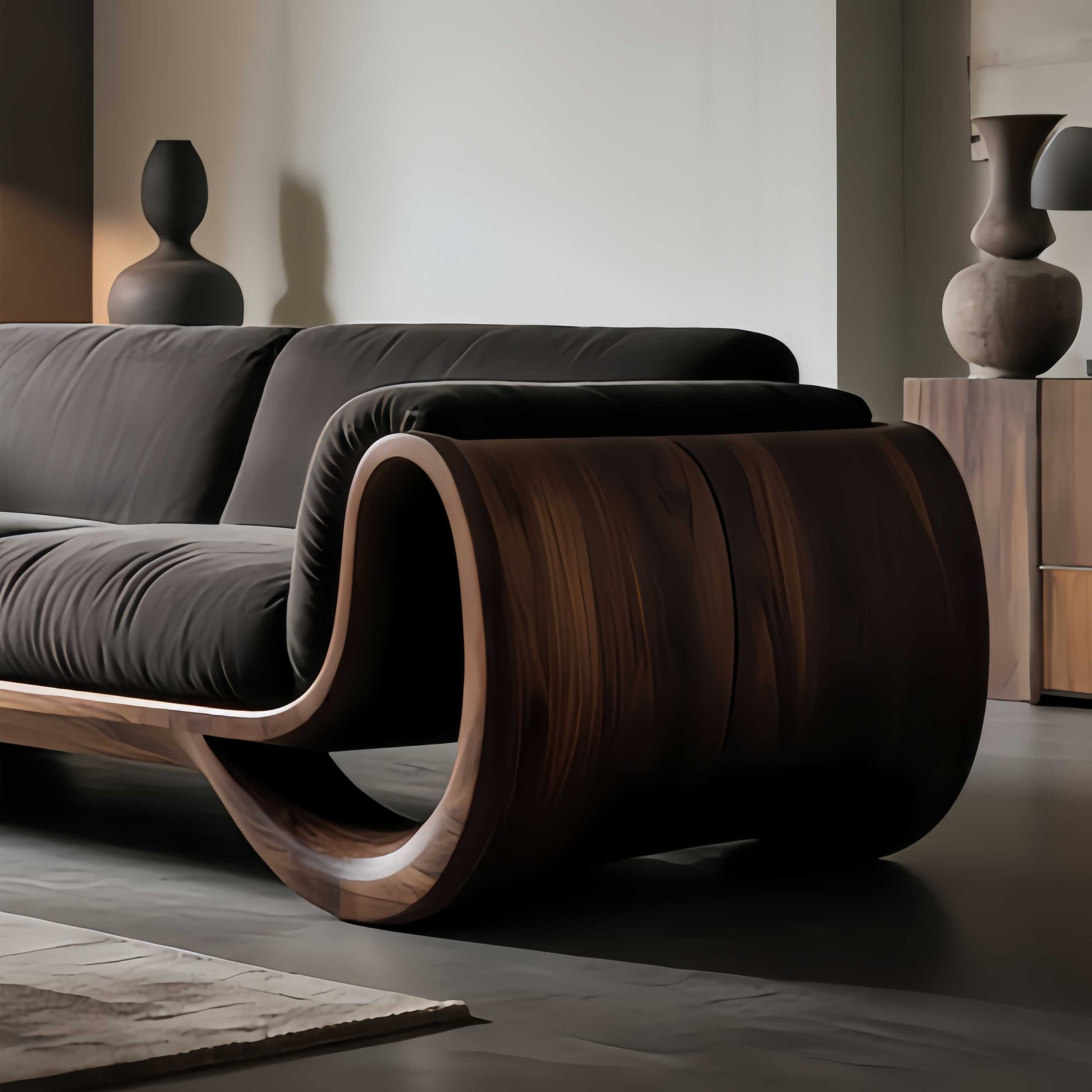 Contemporay New Walnut Sofa – Sculptural Curved Wood Frame with Premium Upholstery, Luxury Modern Living Room Furniture