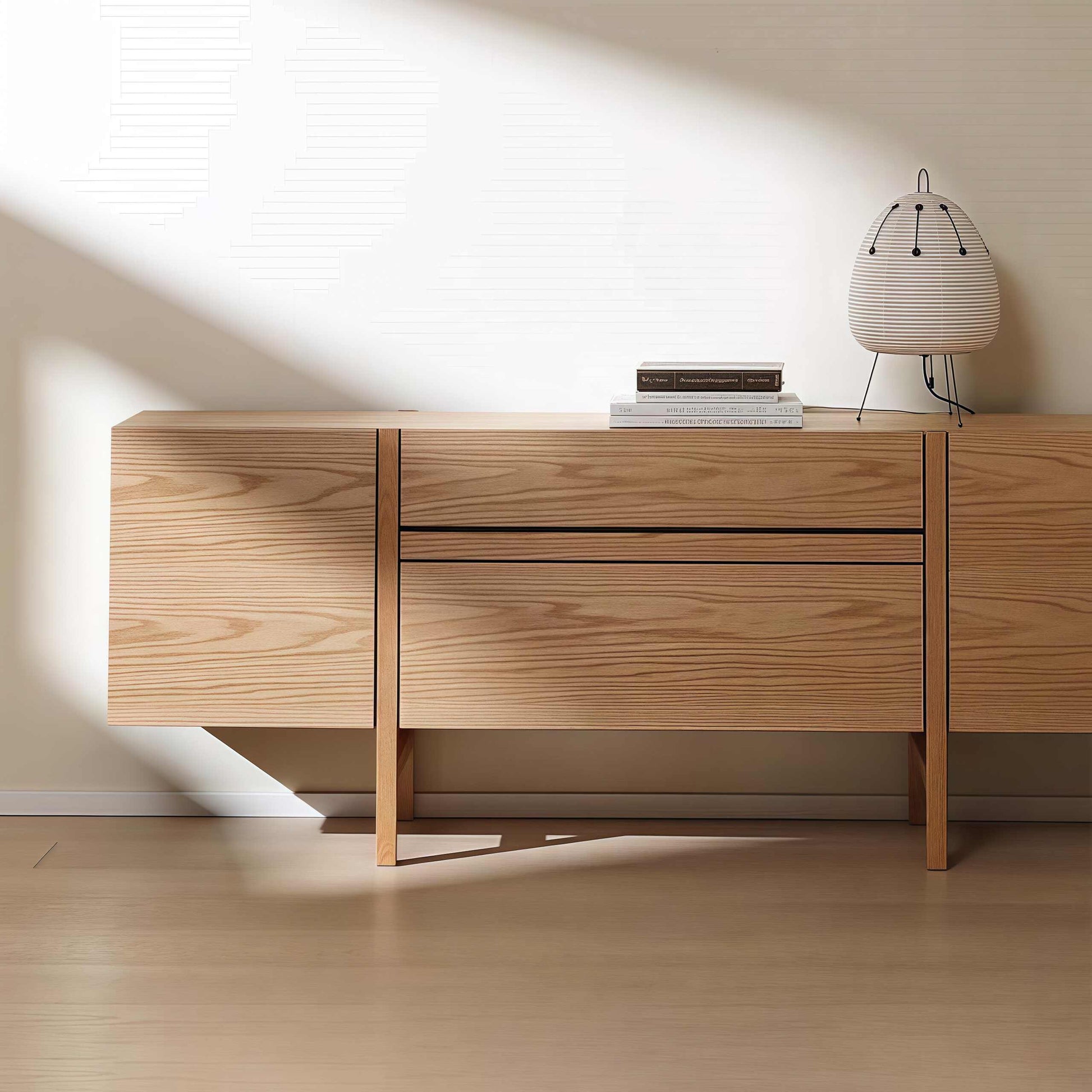 Transform living spaces with this Contemporary Scandinavian Walnut Sideboard, where Nordic minimalism meets Japanese aesthetic principles in stunning storage furniture. This exceptional piece showcases premium black walnut wood with spectacular natural grain patterns that create visual depth while maintaining the clean, unadorned surfaces central to Scandinavian design philosophy. The thoughtful configuration combines closed storage cabinets, smooth-sliding drawers, and an open media compartment that provides versatile organization for dining room essentials or entertainment equipment. True to Japanese wabi-sabi influences, this sideboard celebrates the honest beauty of natural materials while embracing subtle imperfections that make each piece unique in character. The elevated design on slender wooden legs creates visual lightness and allows natural light to flow beneath, preventing the substantial piece from overwhelming modern interiors. Integrated cable management features include strategically placed cutouts that maintain clean aesthetics while accommodating modern technology needs. Perfect for contemporary dining rooms, minimalist living spaces, or any environment seeking furniture that combines Scandinavian functionality with Japanese appreciation for natural materials and understated beauty.