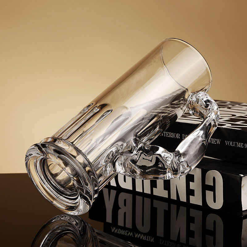 The distinctive muscular handle isn't just for show—it's ergonomically designed for comfortable gripping and secure handling, even when the mug is full. The thick glass walls provide excellent temperature retention, keeping cold beverages refreshingly cool while the substantial weight gives it a premium feel that beer connoisseurs will appreciate.