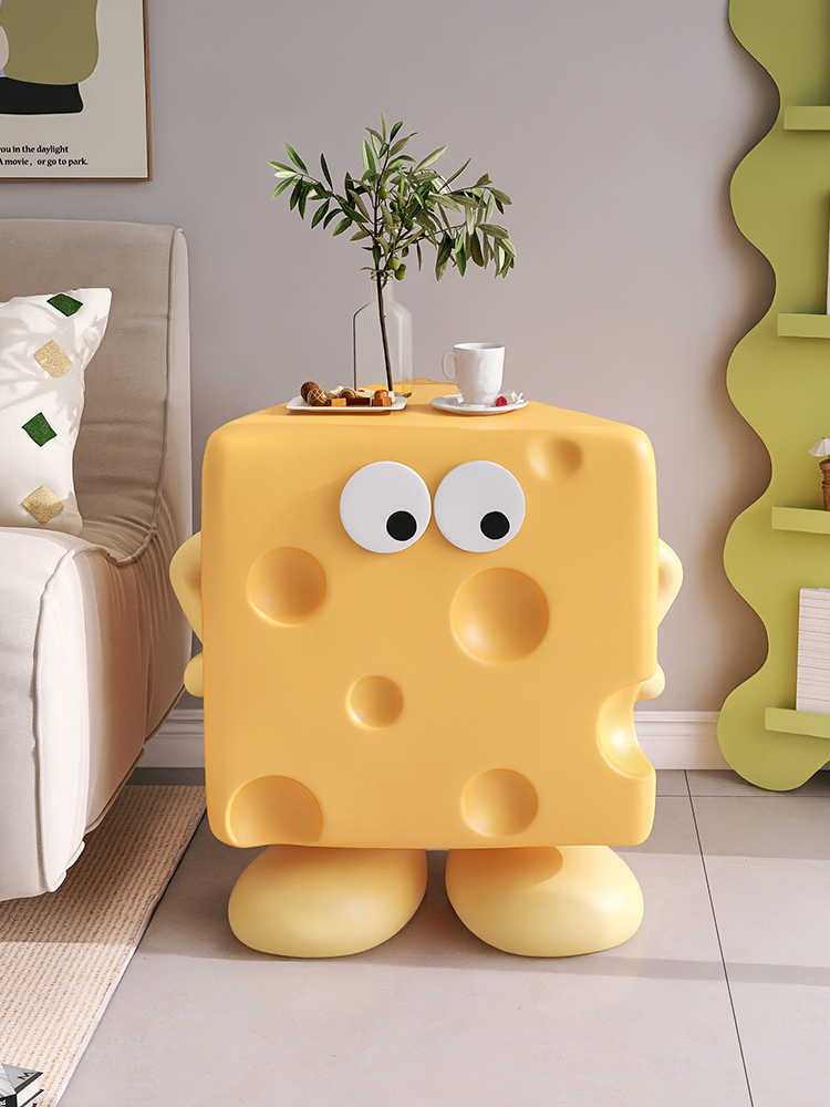Bring joy and functionality to your home with this Cute Cheese Block Coffee Table, designed to delight children and charm adults with its playful personality. Measuring 38x28x41cm, this adorable piece features the unmistakable look of Swiss cheese complete with realistic holes and expressive googly eyes that seem to follow you around the room.
