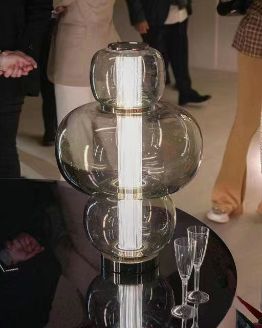 Elevate your interior with this Italian designer glass table lamp, featuring creative double-layered smoky gray glass and a built-in LED core for brilliant, energy-efficient illumination. Perfect for bedrooms, living rooms, sample homes, or boutique projects, the lamp’s sculptural profile adds depth and sophistication—blending artistic flair with minimalist taste.