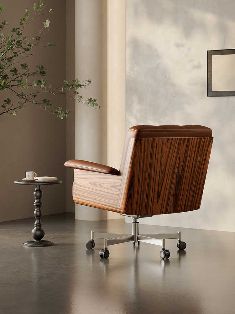 Smooth swivel base and durable rolling casters allow effortless mobility and practical placement in both residential and executive settings.