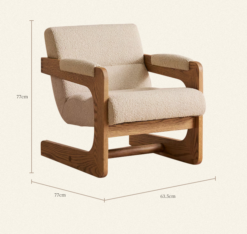 The solid oak frame showcases clean geometric lines that reflect authentic mid-century Scandinavian design principles while the cantilever construction creates visual lightness perfect for small spaces. The premium bouclé fabric offers exceptional durability and timeless appeal.