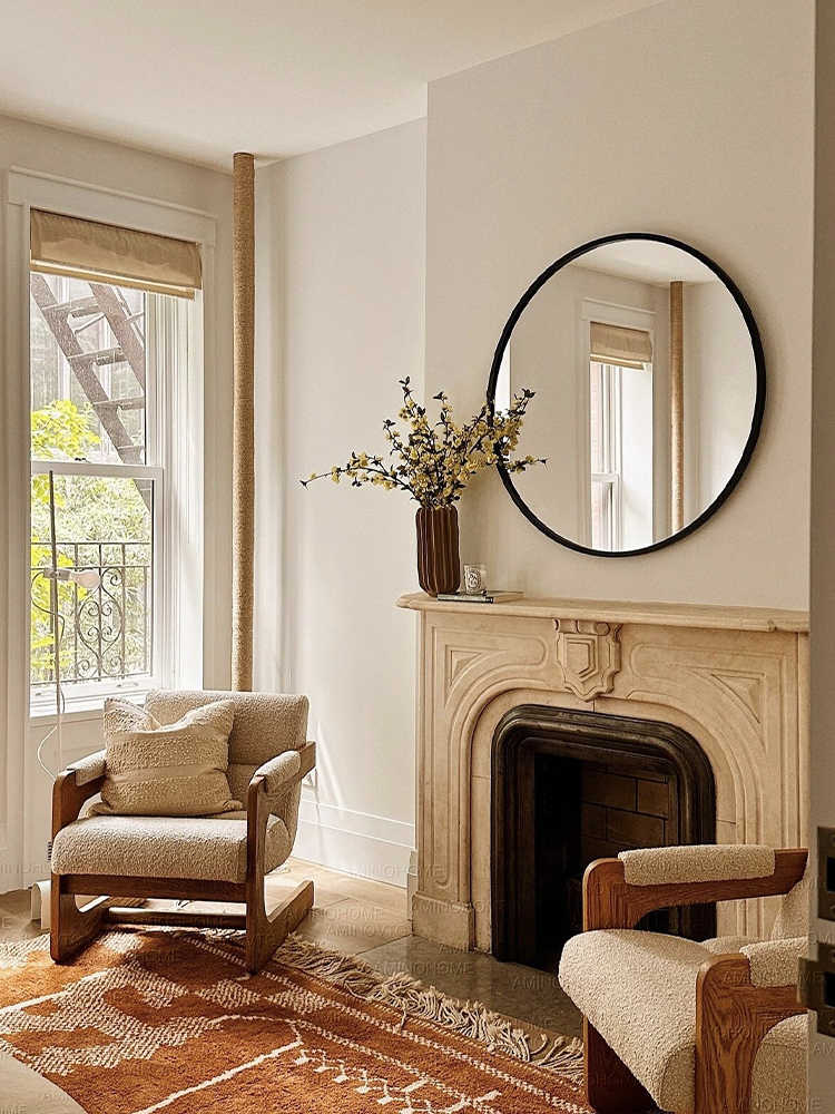 French Vintage Cream Aesthetic: Sophisticated neutral bouclé upholstery in luxurious cream tone creates timeless French elegance perfect for romantic and contemporary interior design schemes.