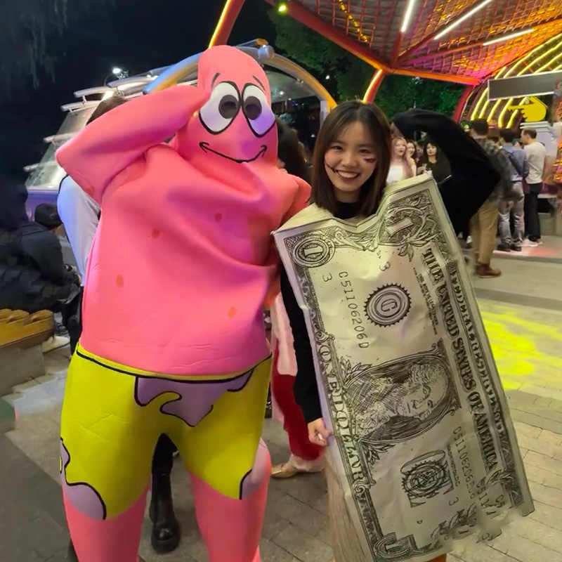 This funny dollar bill cosplay costume transforms the wearer into a walking US currency stack, perfect for Halloween, festivals, or promotion skits. It’s crafted from lightweight, breathable foam-backed polyester, held up by a shoulder harness and open at the arms and neck for easy wear. The tunic is printed with photorealistic bill graphics on the front and textural money “edges” along the sides to simulate a thick stack. Universal sizing fits most taller adults and ensures dramatic comedic and visual impact wherever you go.
