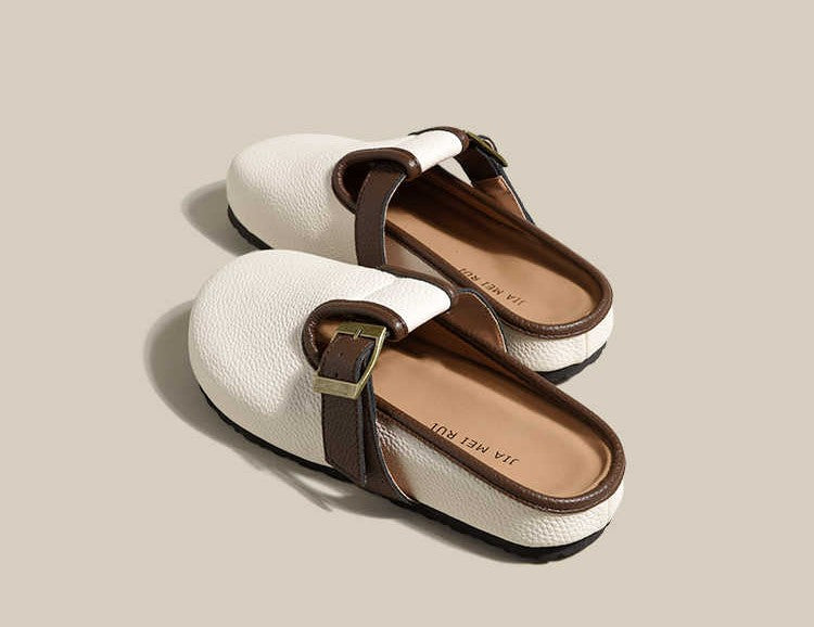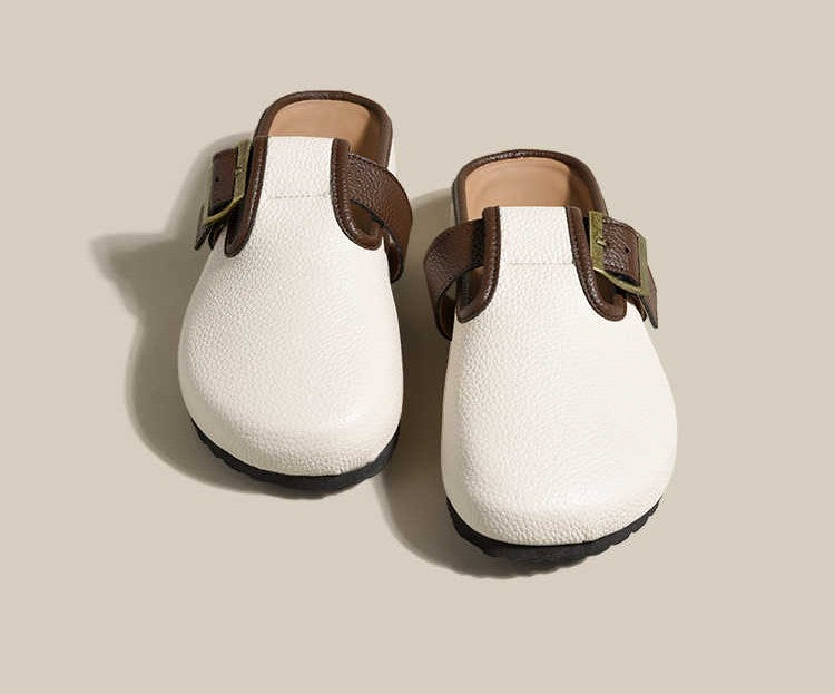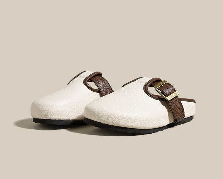 Step into effortless comfort and style with these Genuine Leather Platform Clogs, expertly designed to deliver the classic appeal of European comfort footwear with contemporary fashion sensibilities. The premium genuine leather upper in crisp white showcases quality craftsmanship while the rich brown leather ankle strap with brass buckle hardware adds sophisticated contrast and ensures a secure, customizable fit. The substantial platform sole not only provides fashionable height elevation but also delivers exceptional comfort through superior cushioning that makes these clogs ideal for extended wear throughout busy days. Drawing inspiration from the timeless Birkenstock aesthetic, these slip-on mules feature the open-back design that allows for quick and easy on-off functionality that busy modern women demand from their everyday footwear. Available in comprehensive European sizing from 35 to 40, these versatile clogs transition seamlessly from casual daywear to relaxed evening outings while providing the comfort and support that define quality platform footwear. Perfect for fashion-conscious women who refuse to compromise comfort for style, these clogs represent the ideal fusion of European comfort tradition with contemporary design innovation.