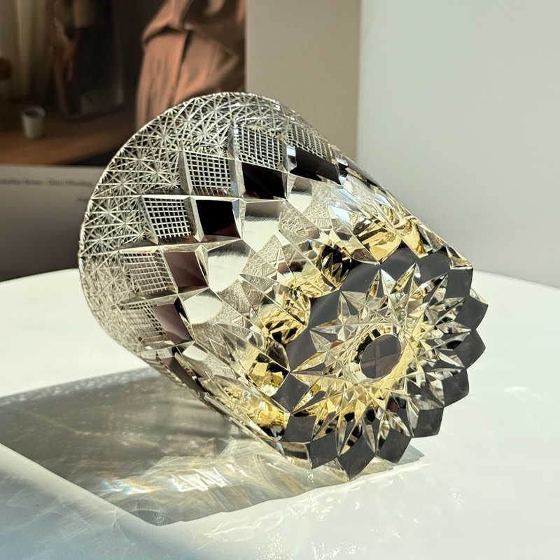 Experience the pinnacle of glass artistry with this Hand-Carved Crystal Whiskey Glass. Painstakingly cut by skilled artisans and made from high-grade K9 crystal, each glass features intricate geometric and star patterns influenced by the rich heritage of the Edo period. The unique shimmer and substantial weight reflect the glass’s exceptional quality and sophistication. Designed with a low profile and wide rim, it’s ideal for whisky, bourbon, cocktails, or water, enhancing the aromas and presentation of each pour. No two glasses are exactly the same, making each one a treasured collectible and a thoughtful gift for discerning drinkers, design aficionados, or anyone celebrating a special milestone. Durable and lead-free, this luxury tumbler is perfectly suited for daily indulgence or display in prestigious home bars.