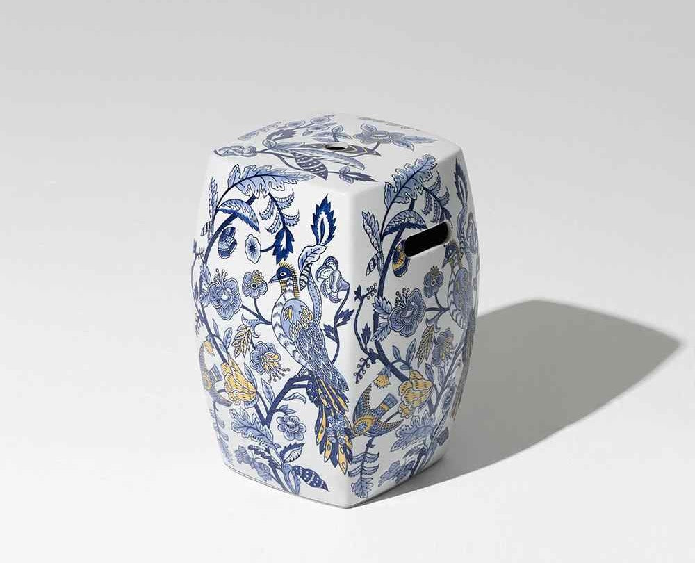 Hand-Painted Blue & White Porcelain Garden Stool, Traditional Ceramic Drum Seat with Botanical Motifs, Multi-Function Side Table & Stool