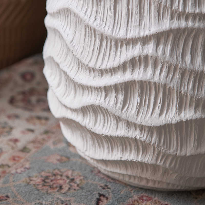 Artisan Rope-Textured Ceramic: Hand-sculpted ceramic base with intricate rope-like horizontal ridges creates stunning tactile surface that adds organic texture to modern spaces.