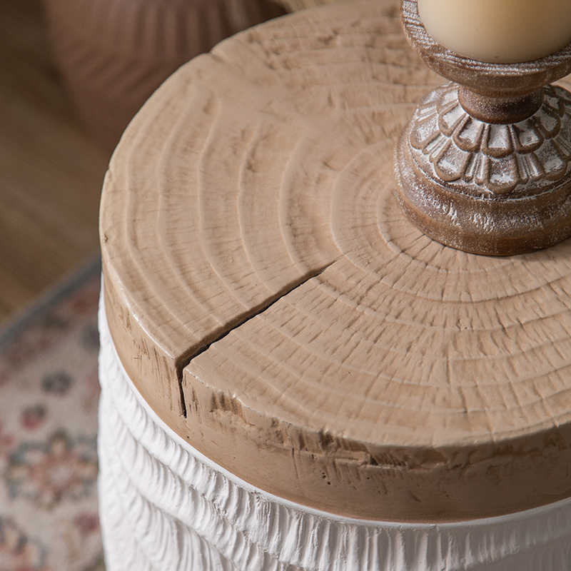 Bring organic warmth to your space with this Handcrafted Rope-Textured Ceramic Side Table, where artisan craftsmanship meets natural beauty. The stunning ceramic base features meticulously hand-sculpted horizontal ridges that mimic rope textures, creating visual depth and tactile appeal that invites touch.