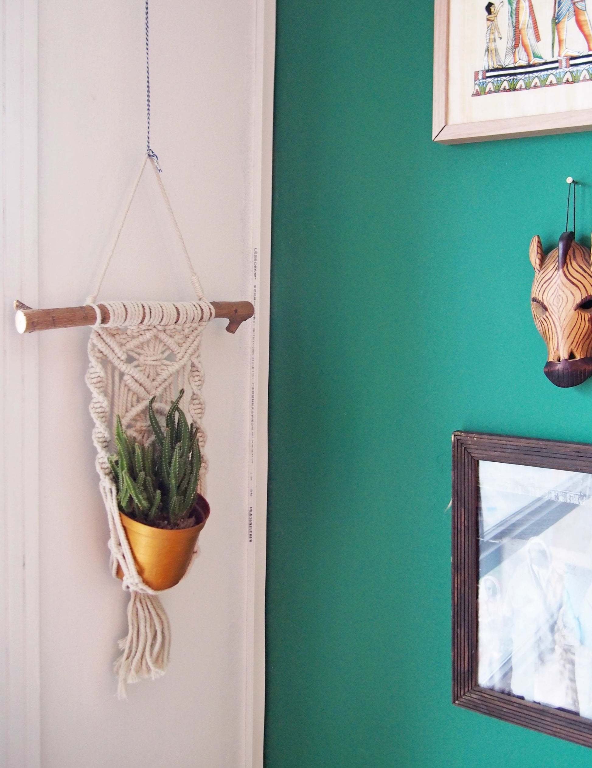 Handmade Geometric Macrame Wall Hanging – Cotton Rope Tapestry, Boho Art Decor, White Plant Holder Basket, Living Room, Bedroom, Entryway