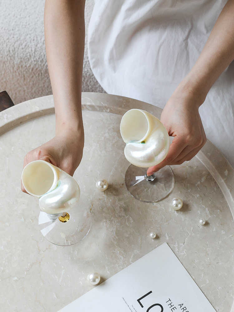 Handmade Luxury Shell Wine Glasses Set of 2, Natural White Seashell Crystal Stem Goblets, Creative Champagne Glasses for Home Bar and Gift