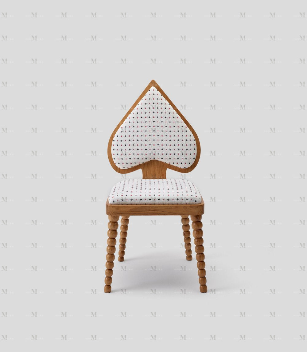 Heart-Shaped Vintage Dining Chair Set, Cream Style Solid Wood Frame with Polka Dot Upholstery, Designer Furniture for Restaurants & B&Bs