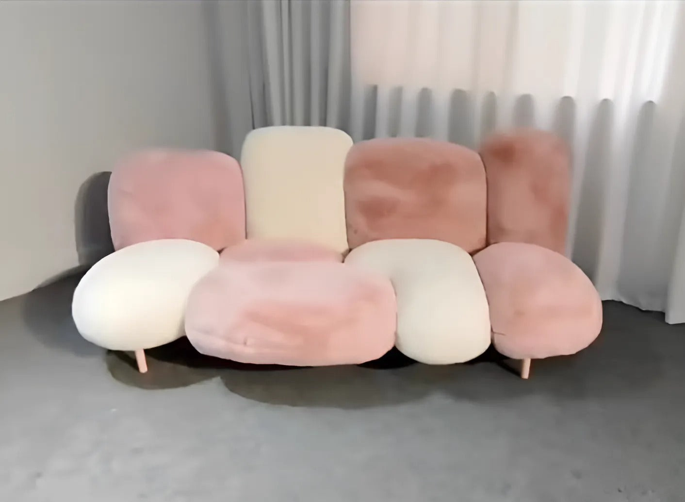 Italian couch made with soft faux fur comfortable cushioning luxurious design geometric sofa couch