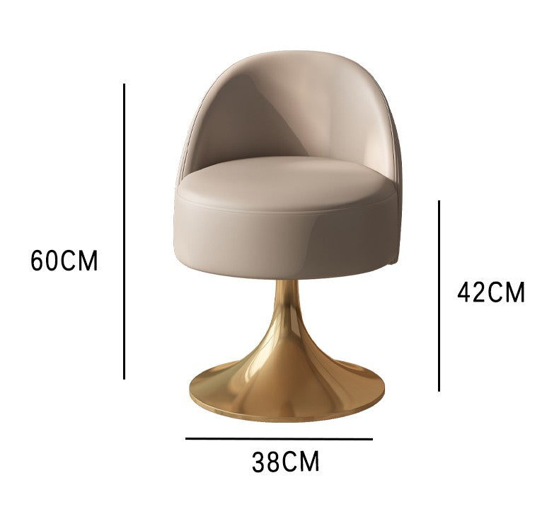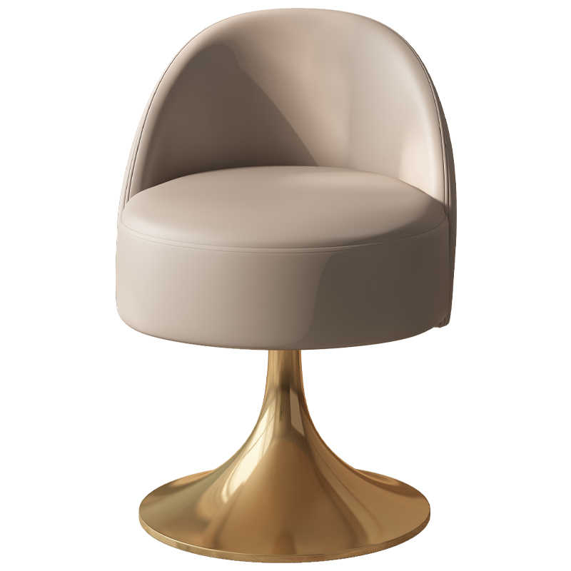 Italian Luxury Swivel Vanity Chair with Gold Tulip Base, Premium Leather Upholstered Makeup Stool with Backrest for Small Spaces
