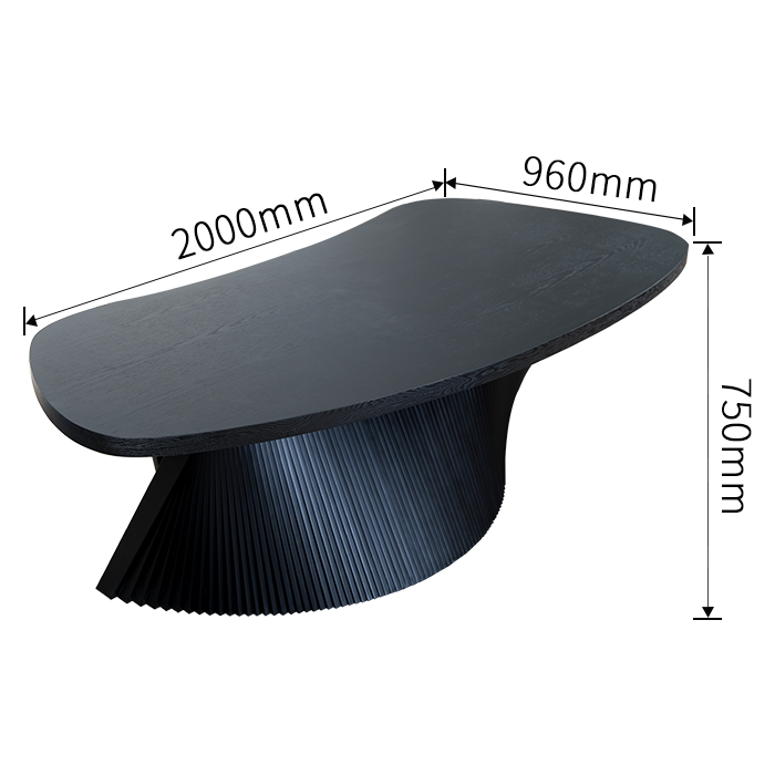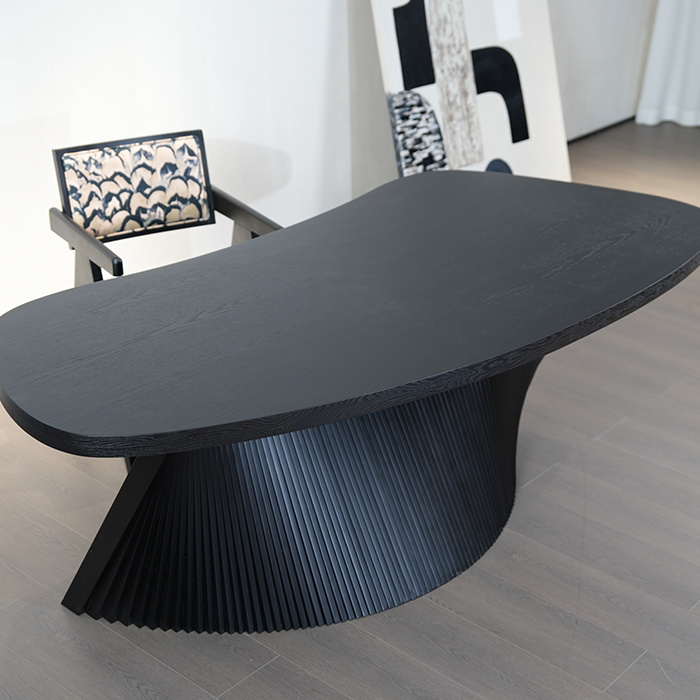 Distinctive Italian minimalist design with sculptural asymmetric tabletop and statement curved ribbed base for premium style.