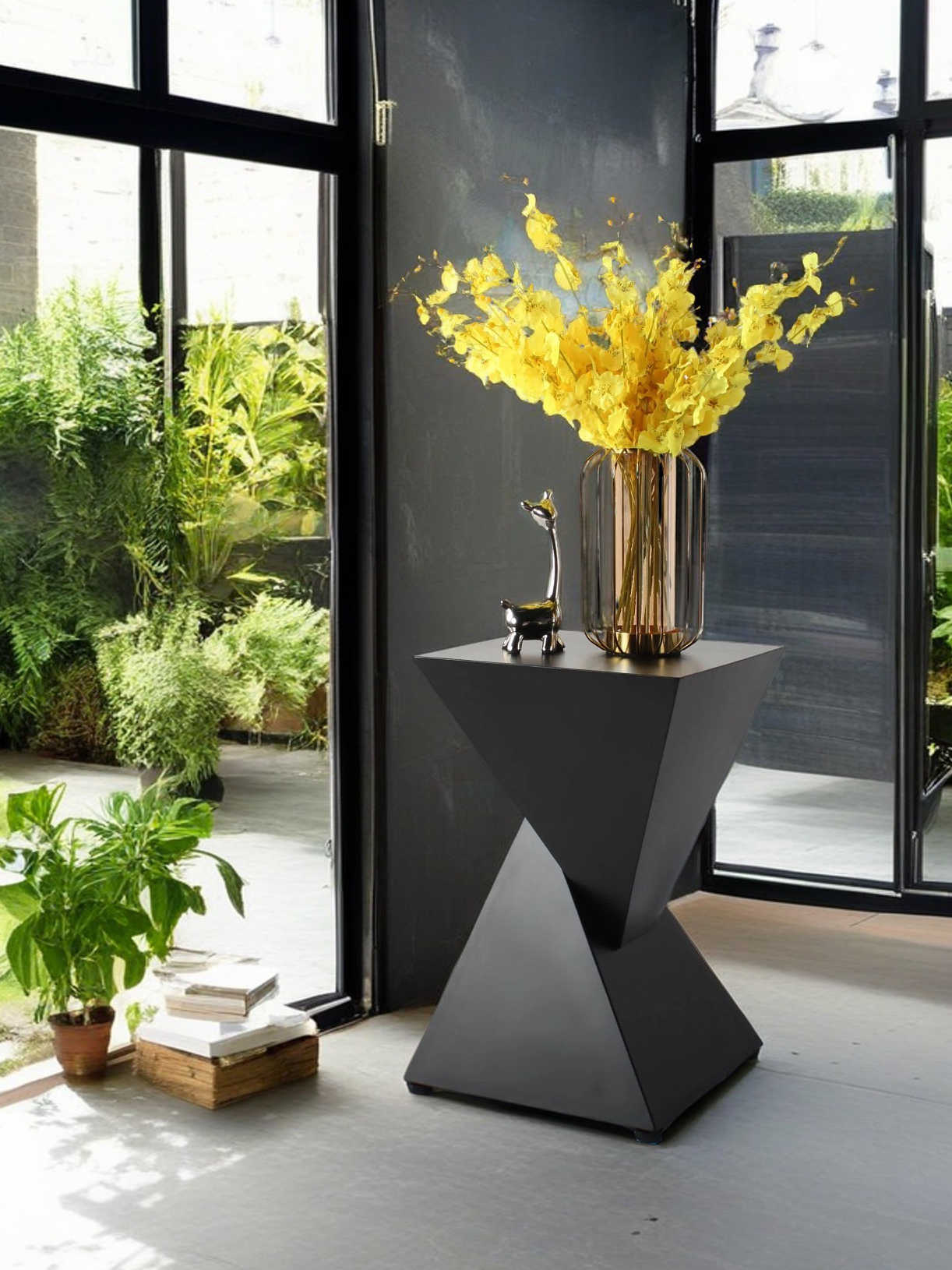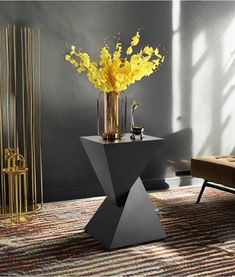 Italian Minimalist Geometric Side Table, Modern Hourglass Design Accent Table in Matte Black Finish, Contemporary Sculptural Furniture