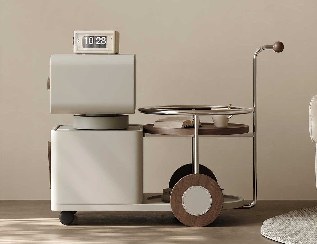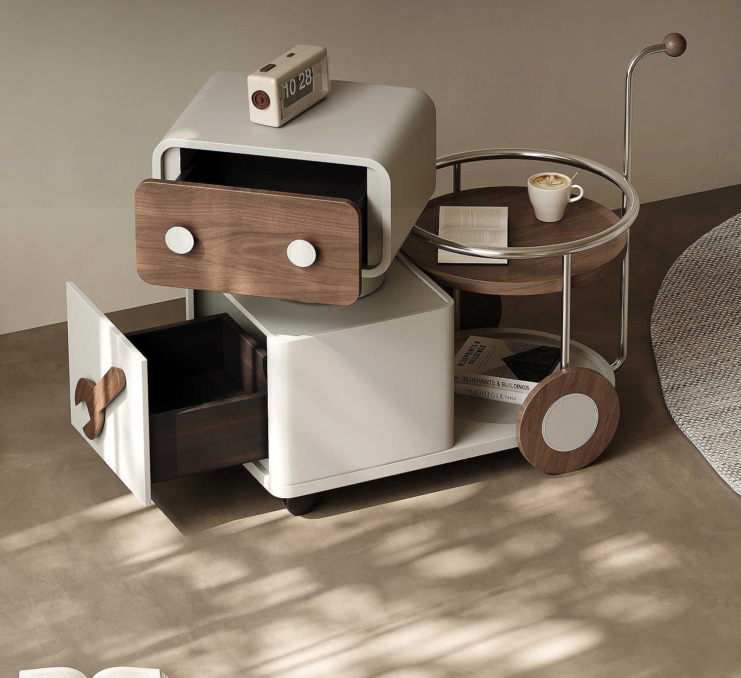 Italian Movable Sofa Side Table – 2025 Creative Rolling End Cabinet, Modern Small Apartment Multipurpose Trolley with Storage