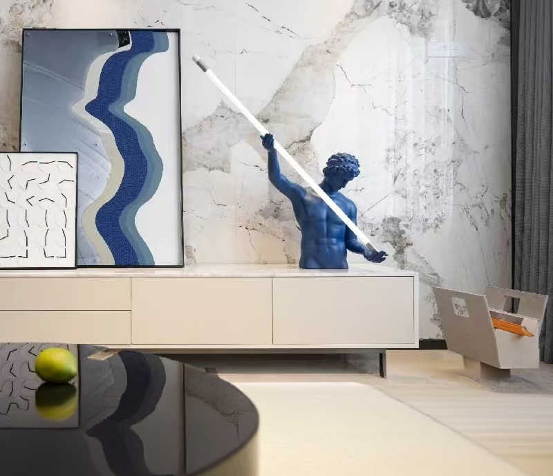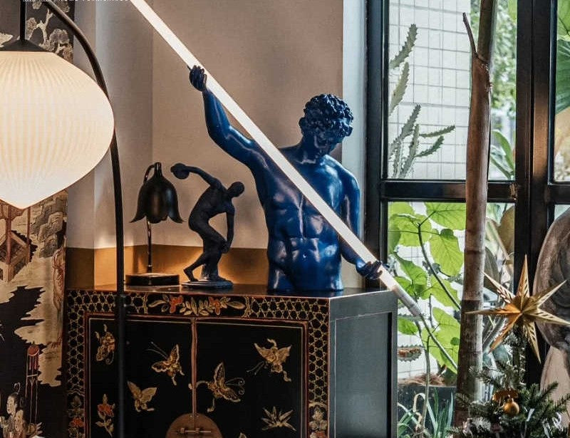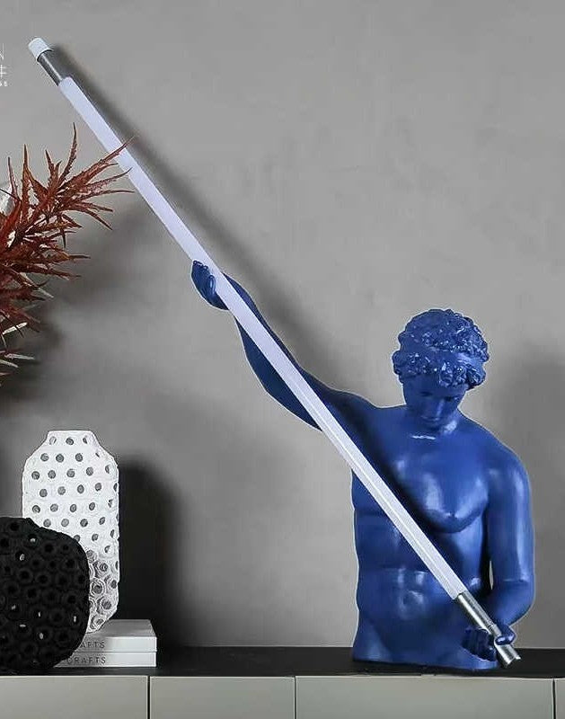 Unique creative design features a striking pose with a luminous rod, blending artistic expression with practical ambient lighting.