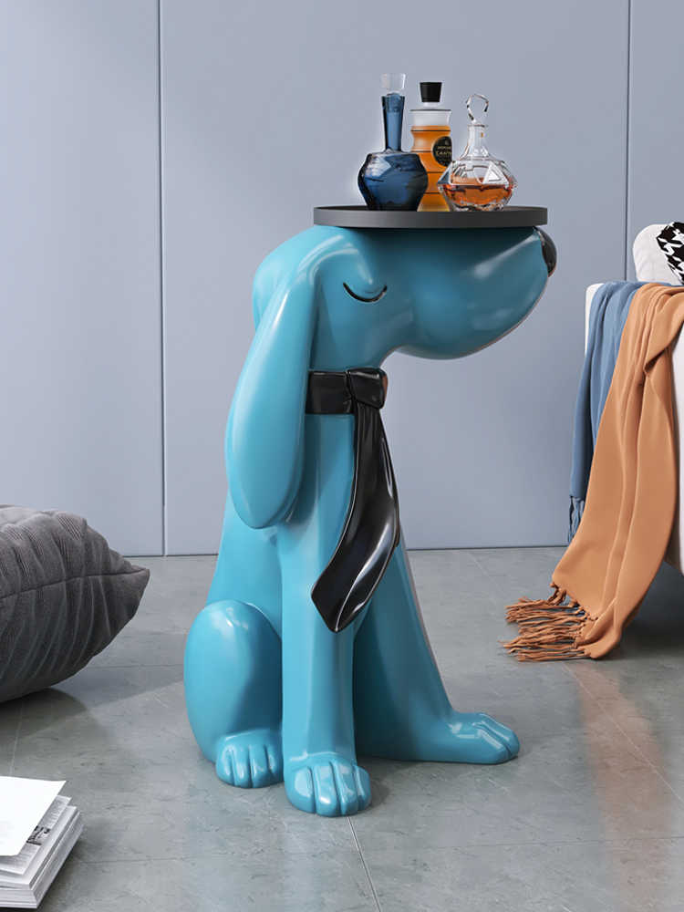 Elevate your interior with this whimsical large green dog tray sculpture—a functional art piece and side table in one. Standing 70cm tall, it is expertly crafted from durable Nordic-style resin and finished in a glossy, modern color palette. The flat tray surface on its head offers reliable, easy-access storage for drinks, remotes, snacks, or décor, while the playful dog posture brings charm and personality to any setting.