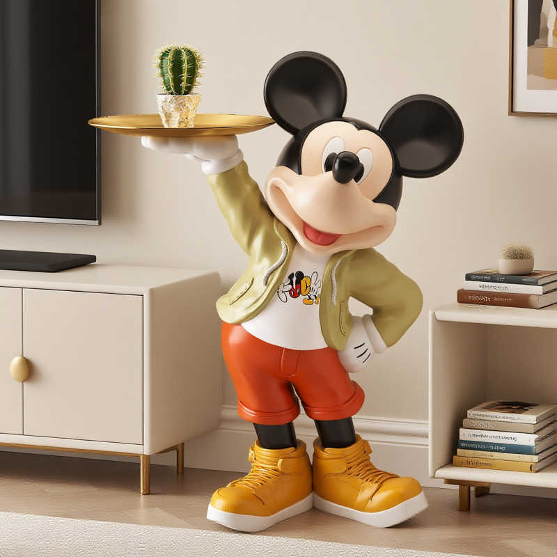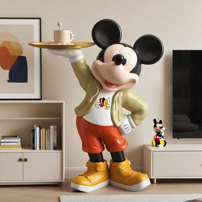 Bring Disney magic into your home with this Life-Size Mickey Mouse Server Statue, where beloved character charm meets practical functionality through innovative design. The impressive 80cm tall figure features Mickey in contemporary casual styling with olive jacket, white logo tee, and classic red shorts that update the timeless character for modern living.