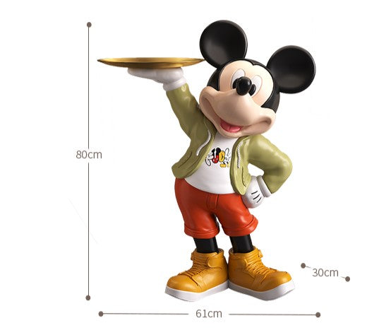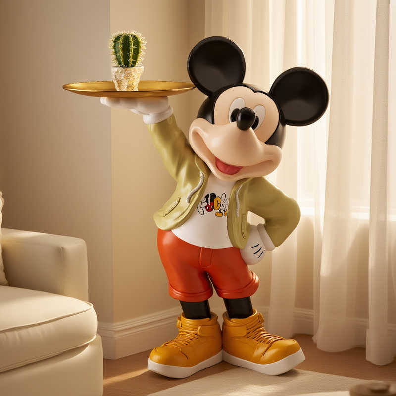 Life-Size Mickey Mouse Server Statue with Golden Tray, Disney Character Floor Figurine with Functional Display Surface, Premium Living Room Decor