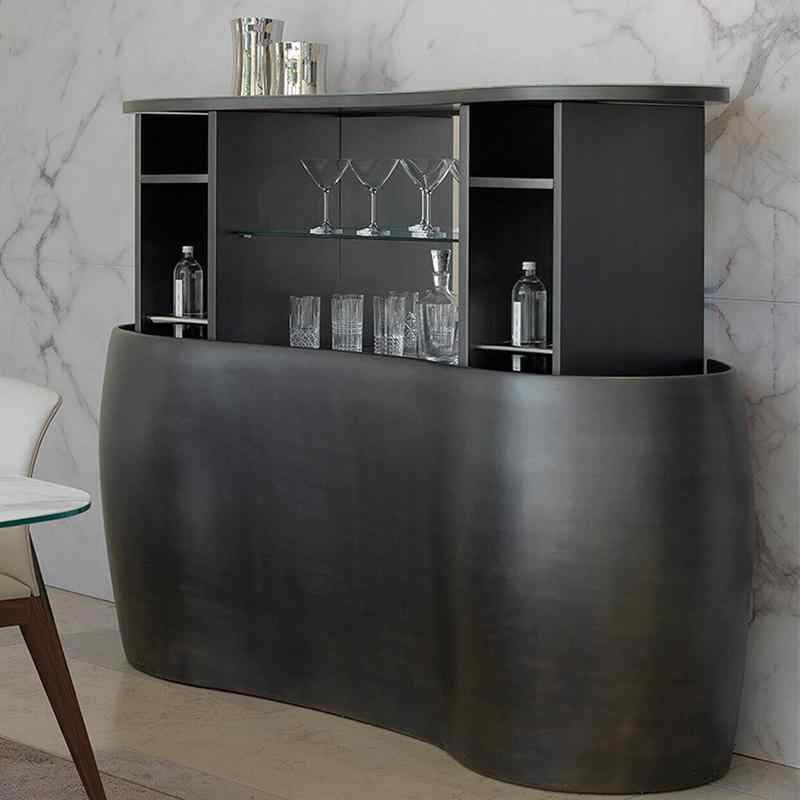 Revolutionize home entertaining with this extraordinary Luxury Adjustable Bar Cabinet, masterfully engineered to embody the sophisticated design principles that have made Italian furniture legendary worldwide. The innovative curved silhouette with adjustable-height mechanism offers unprecedented versatility, transforming from elegant storage cabinet to professional bar counter that adapts to any entertaining scenario or spatial requirement. Premium construction features a sophisticated black matte finish that creates dramatic contrast against the crystal-clear glass display compartments, allowing premium spirits, wine collections, and barware to be showcased like museum exhibits. The thoughtfully organized interior maximizes storage capacity with dedicated spaces for bottles, glassware, and cocktail accessories while maintaining the sleek exterior profile that defines contemporary luxury furniture. This investment piece represents the pinnacle of Italian design excellence, where traditional craftsmanship meets cutting-edge functionality to create furniture that serves multiple purposes while maintaining artistic integrity. Perfect for luxury residences, boutique hotels, or upscale commercial venues seeking bar furniture that transcends ordinary storage to become sculptural centerpiece worthy of the most sophisticated interiors.