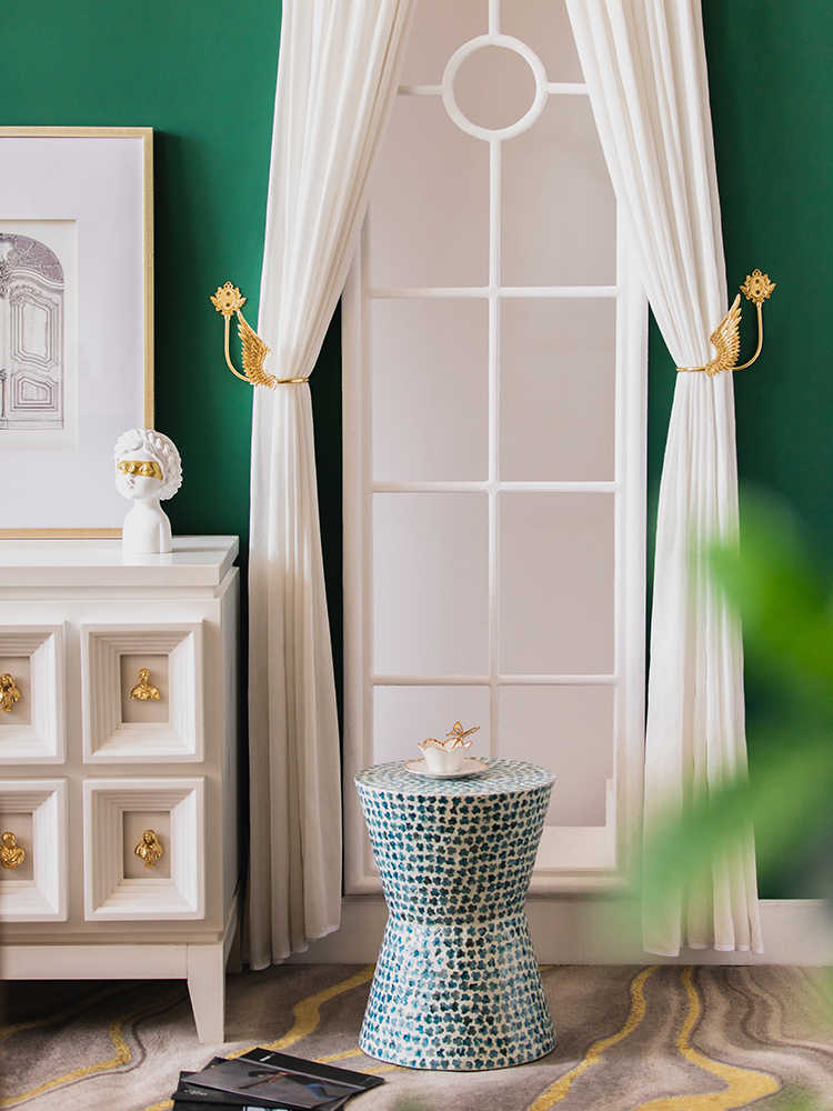 High-end style curtain hook set with detailed angel wing sculpture in solid brass gold, elevates living room and bedroom décor.