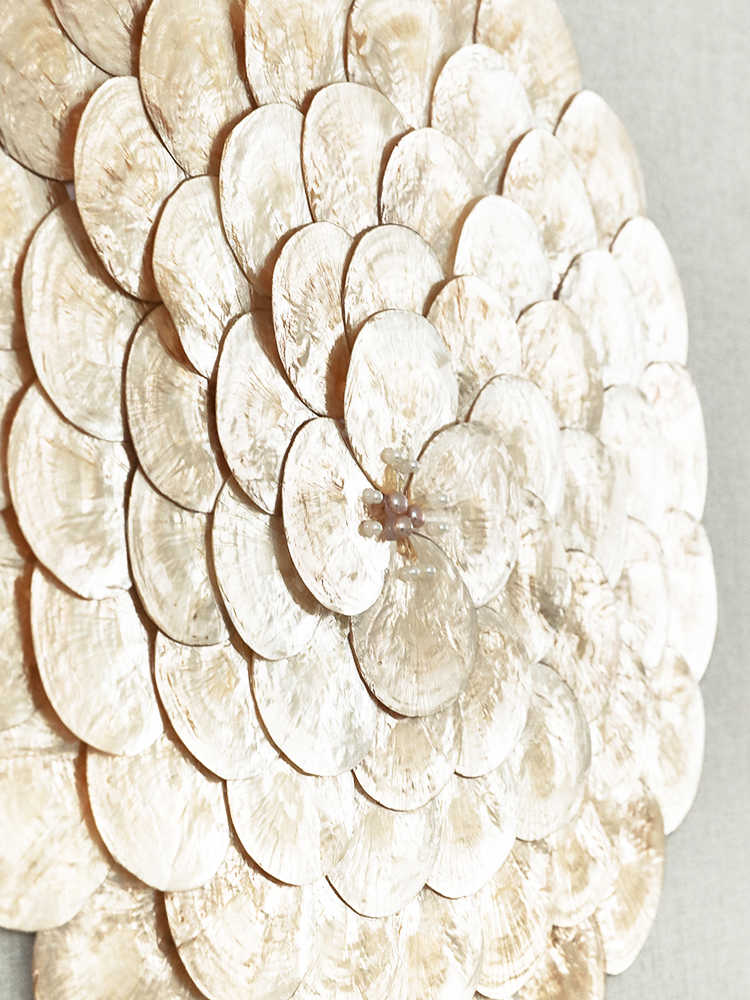 Transform unsightly switches or circuit panels into a stunning wall accent with this luxury sliding cover panel, crafted with genuine mother-of-pearl medallion art on linen background. The innovative left-slide mount (frame edge extends 12 cm/4.7") provides smooth access to power boxes, while the square 24" format secures and beautifies residential or hospitality interiors.