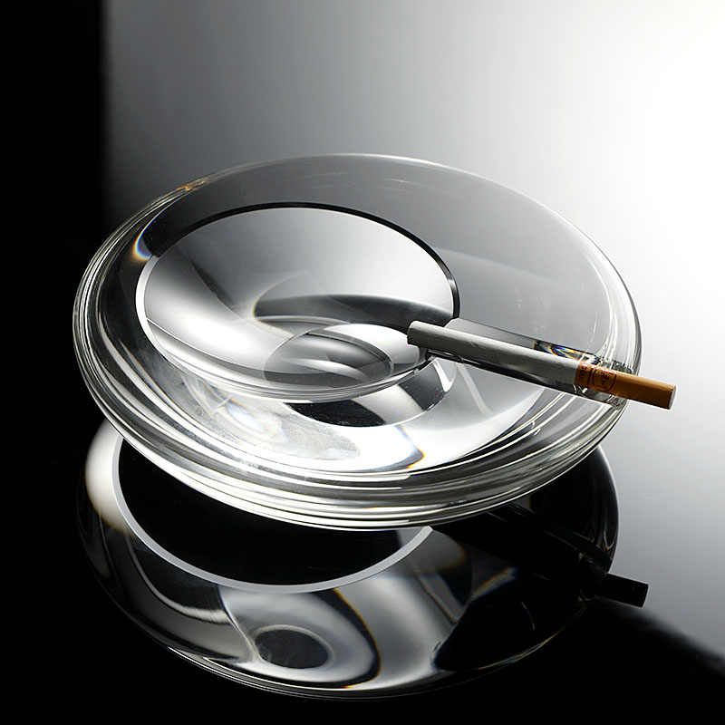 Luxury Crystal Glass Cigar Ashtray, Premium Handmade Round Smoking Accessory for Office & Living Room, High-End Heavy Duty Design