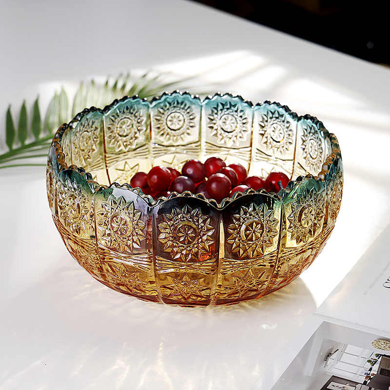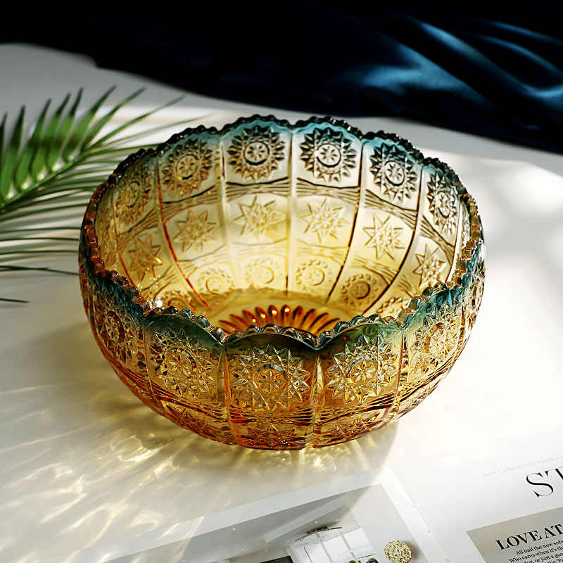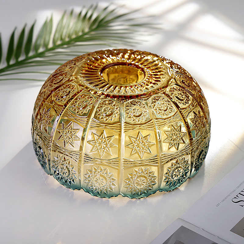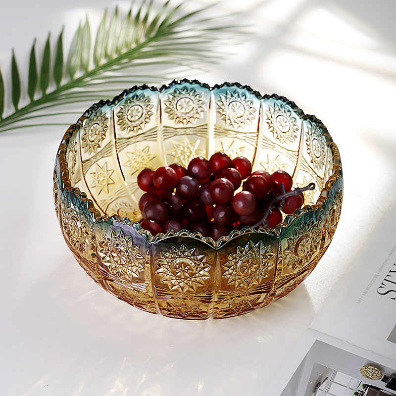 Luxury Crystal Glass Fruit Bowl, Embossed Star Pattern Serving Dish with Gradient Colors, Home Living Room Coffee Table Snack Bowl