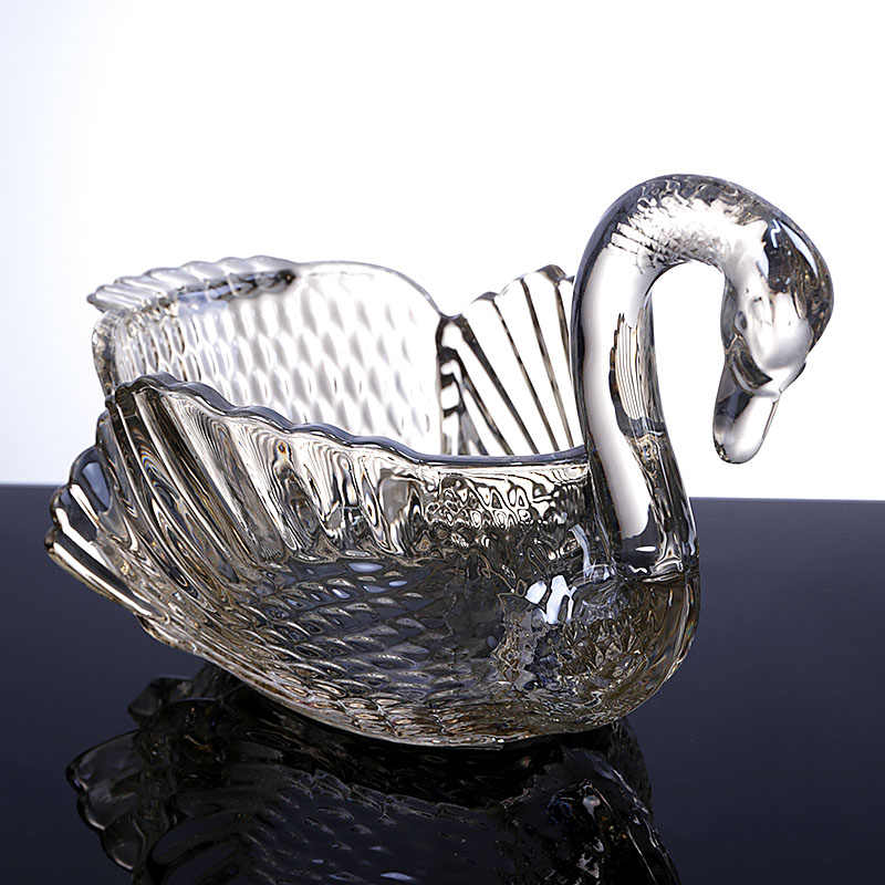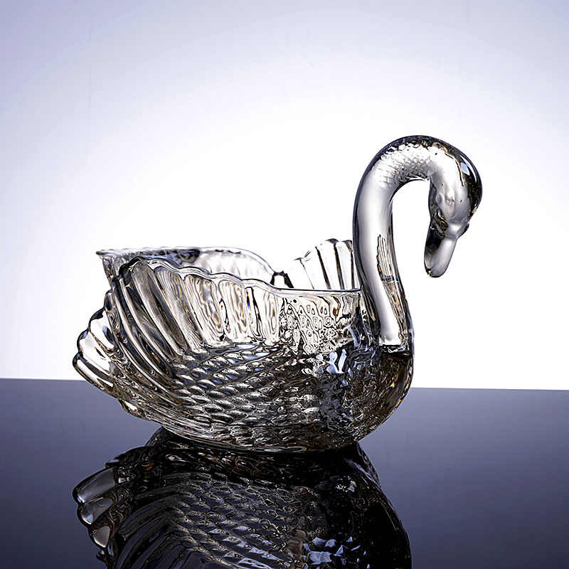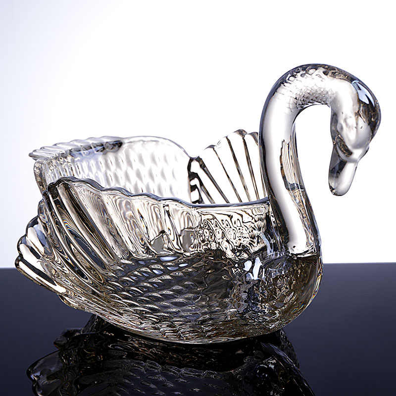 Luxury Crystal Glass Swan Fruit Bowl, Elegant Wedding Gift Serving Dish with Textured Wing Design, Clear Glass Animal Fruit Plate