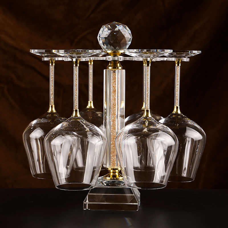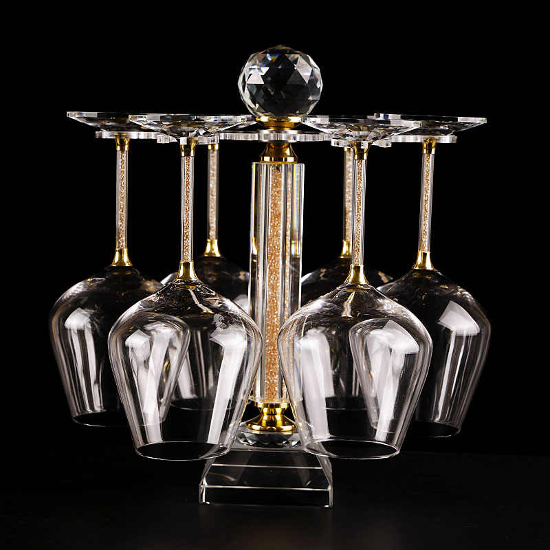 Innovative rotating crystal rack with faceted ball top provides stunning 360-degree display while keeping glasses organized and easily accessible.