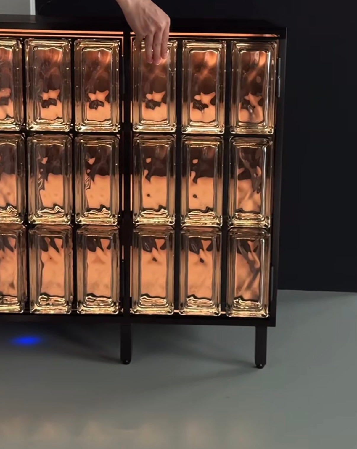 Bring sophistication and functionality into your home with this modern glass block storage cabinet—a piece that’s as practical as it is visually striking.