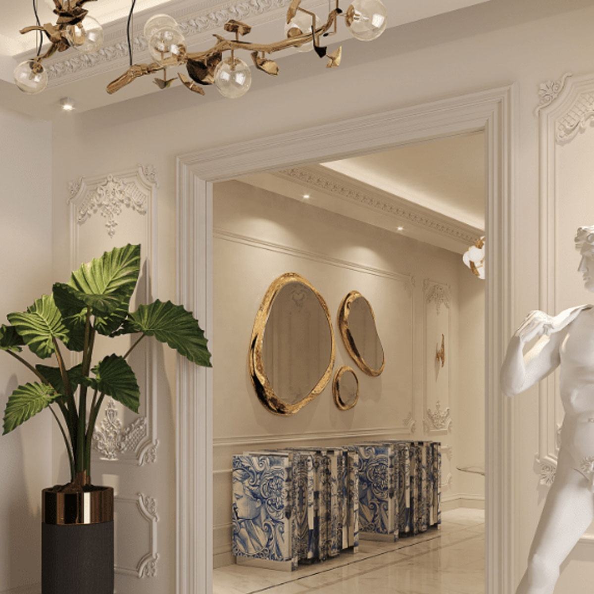 Elegant set of three luxury gold halo mirrors, crafted with sculpted metal frames for a luminous contemporary touch.
