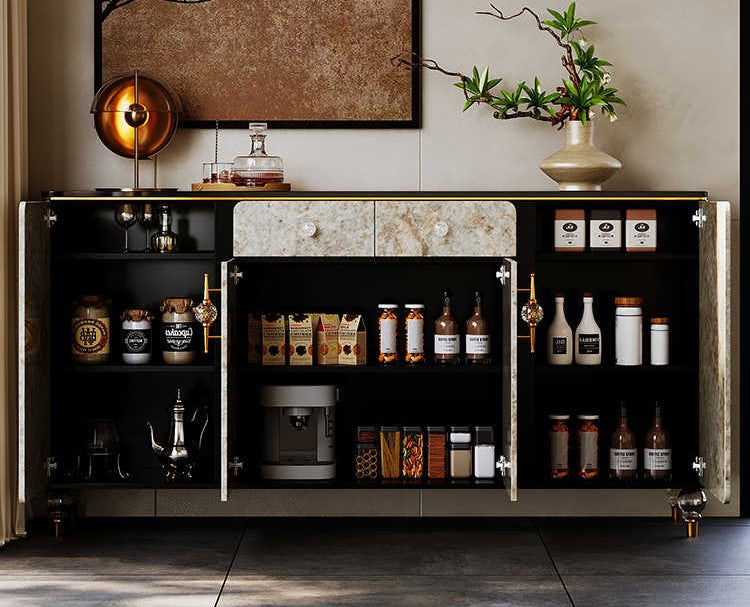 Built with ENF-grade multilayer solid wood, the sideboard guarantees excellent structural strength, long-term reliability, and peace of mind for family living. The adaptable storage configuration—two central drawers and four generous doors—beautifully organizes everything from dishes and tableware to bar accessories and decorative accents. The flawless green and bronze finish exudes exclusivity, making this piece more than just functional storage—it’s a destination for curated display and daily luxury living.