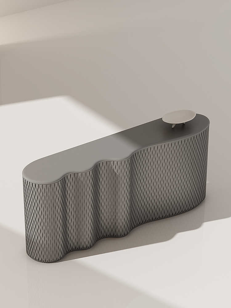 Sculptural wavy façade crafted using designer techniques for deep textural contrast and premium metallic star-silver color.