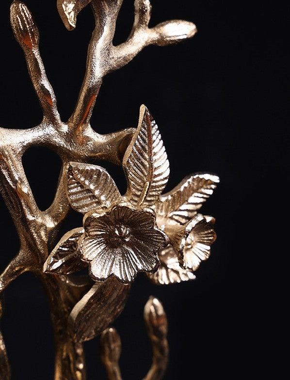 Premium imported brass construction with intricate floral vine design creates an elegant sculptural base for sophisticated living room décor.