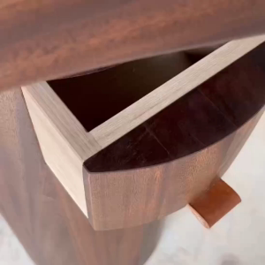 Smooth curved edges and dark walnut finish create a calming, sophisticated ambiance in home offices, bedrooms, or living spaces.