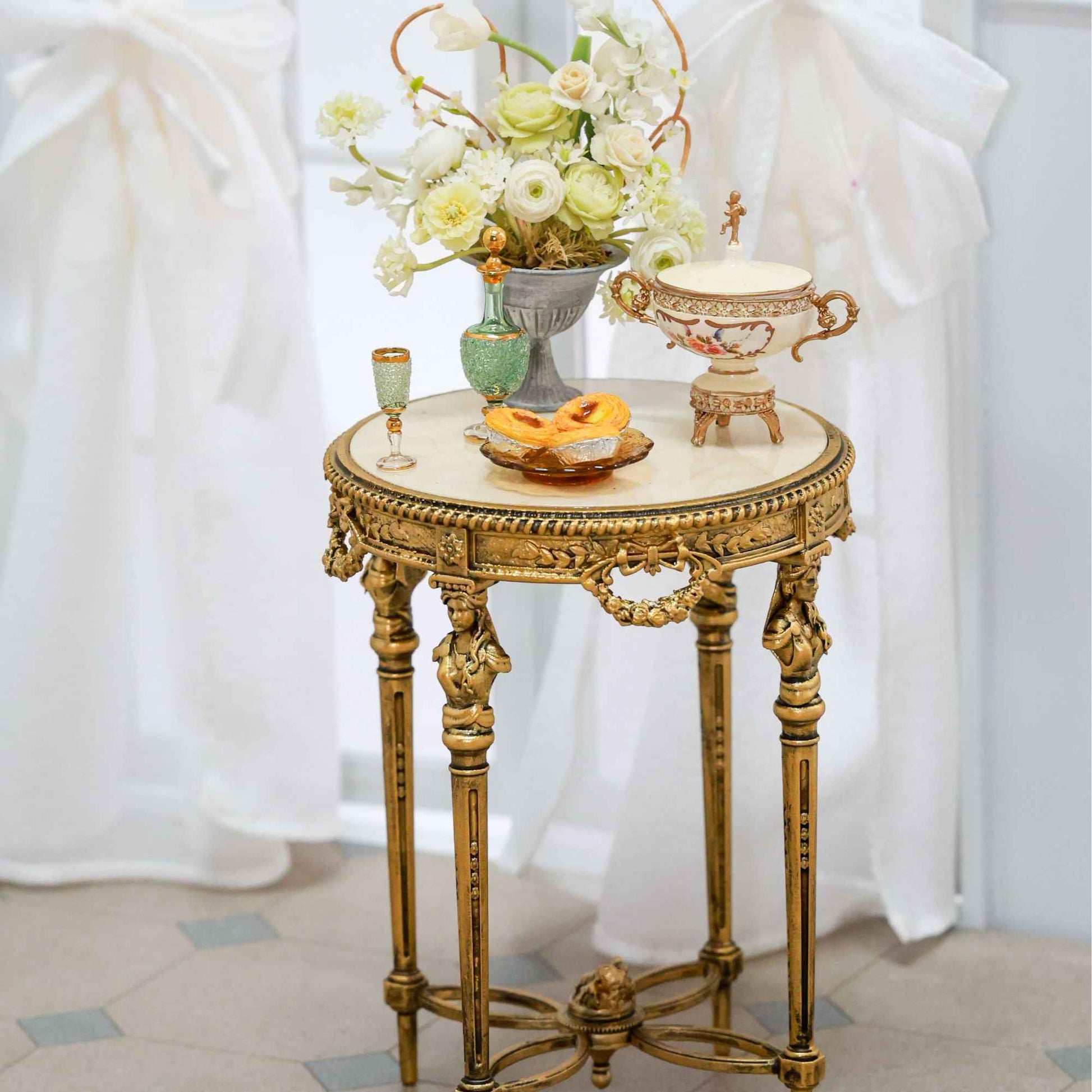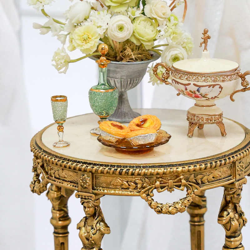 Miniature Augustus Side Table DIY Kit for BJD Dolls, 1:6 Scale Ornate Baroque Style Furniture Assembly Kit with Marble Top