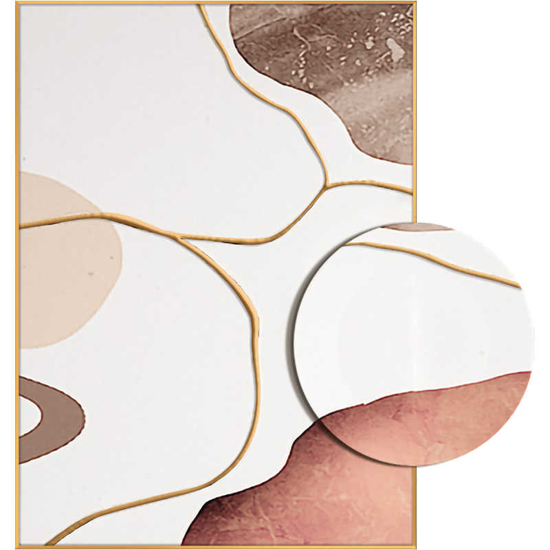 Infuse contemporary interiors with artful sophistication using this Minimalist Abstract Wall Art, a cleverly layered set composed of a rectangular main panel and a movable round accent. Hand-textured brushwork blends soft nudes, browns, and creams with bold, smooth metallic lines, creating both visual intrigue and tactile charm. The unique overlayed circle adds dimensionality, casting subtle shadows and drawing the eye.