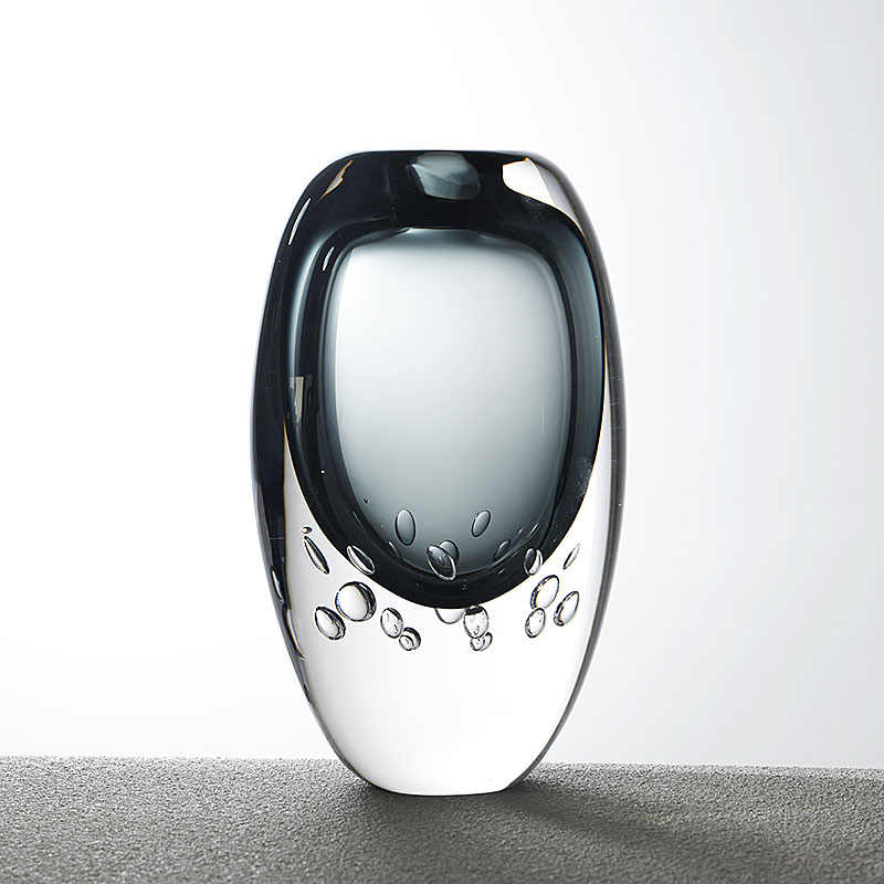 Transform any space with this Minimalist Grey Bubble Glass Vase, a stunning example of contemporary glassmaking artistry that combines functional beauty with sculptural elegance. Standing nearly 10 inches tall and weighing a substantial 5 kilograms, this premium crystal vase features captivating air bubbles suspended within the grey-tinted glass, creating mesmerizing optical effects as light passes through its surface.
