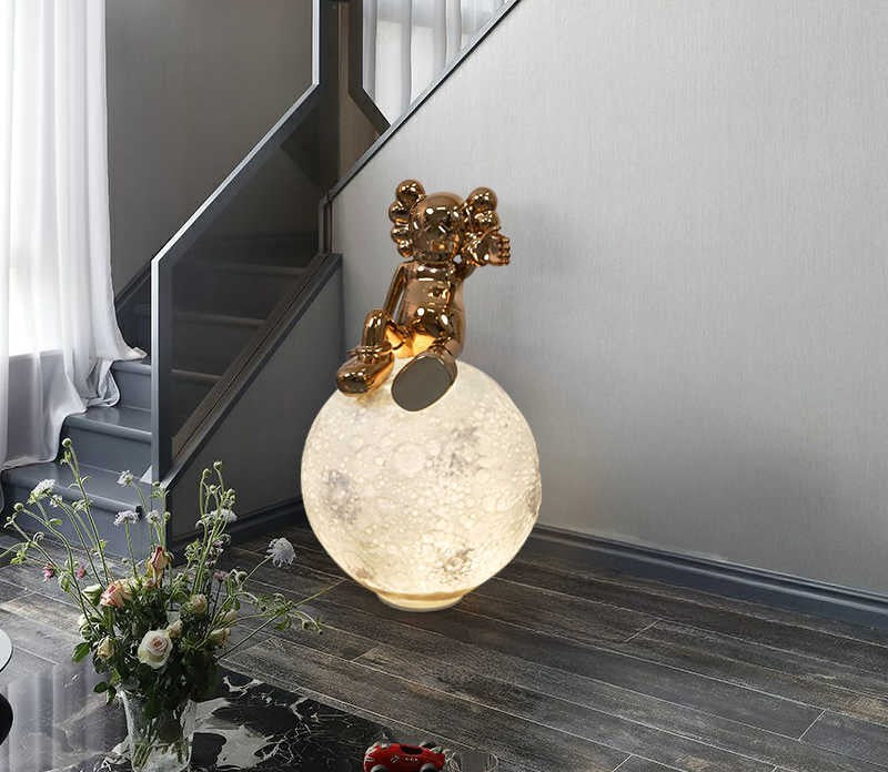 Modern Designer Bear Figurine Moon Lamp, Large Cartoon Sculpture for Living Room, Nursery & Staircase Decor, Luxury Creative LED Art