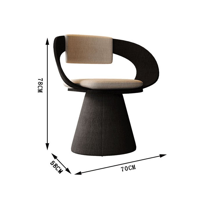 The premium dual-tone upholstery showcases sophisticated color coordination while the 360-degree swivel function adds practical versatility. The conical pedestal base provides sculptural foundation while ensuring smooth rotation and stable support.